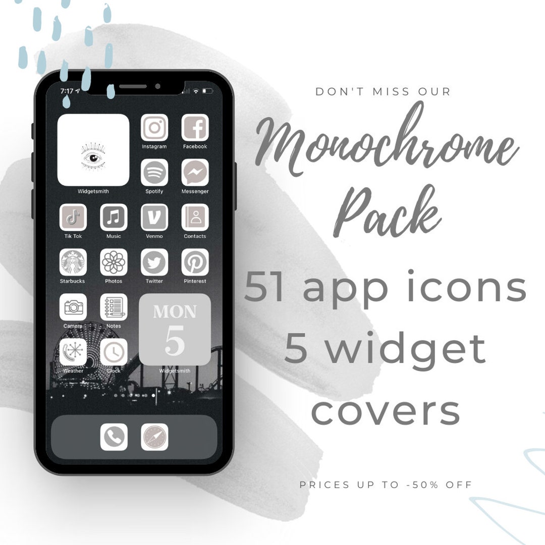 Iphone Screen Ios 14 White 51 Icons Pack Download Monochrome Etsy